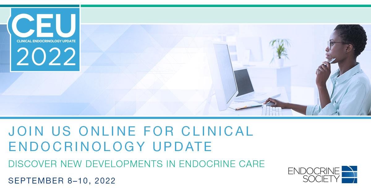 Join us for virtual CEU 2022 on September 8-10 to discover the latest innovative practices in endocrinology diagnosis and treatment. This is a must-attend event for all endocrinologists, and it features 42 sessions covering nine of the most crucial topics in hormone health. CEU is certified for 28 AMA PRA Category 1 Credits™ and AAPA Category 1 CME Credits and Nursing Contact Hours.