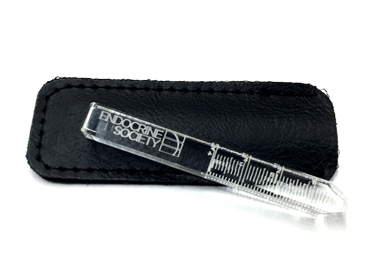 The luedde exophthalmometer is placed on the lateral orbital wall and is used to measure the protrusion of the eye through its transparent ruler. The Endocrine Society luedde exophthalmometer measures 3 3/8” long by 3/8” wide and comes with a protective leather storage sleeve and easy-cleaning instructions. Engraved with the Endocrine Society logo and millimeter measurement markings, this device is a must-have for any endocrinologist.